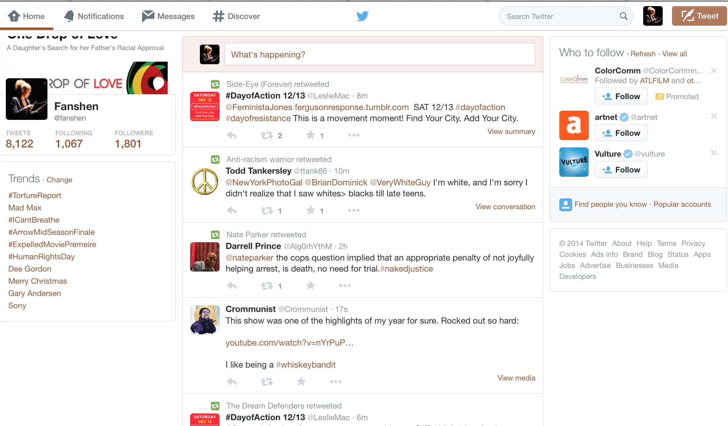 A peak at my desktop timeline (the column down the middle) from 12/10/14: